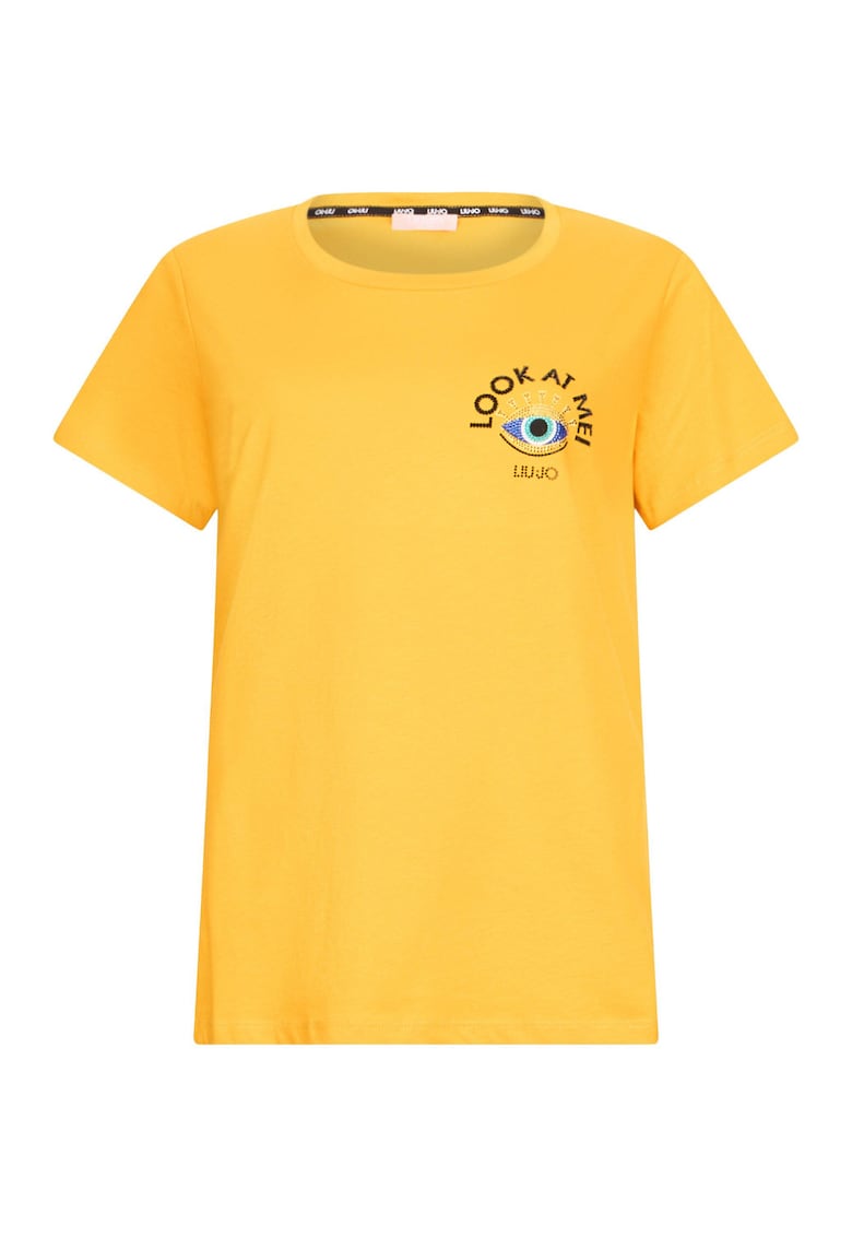 Тениска от памук с декоративни камъни – Жълт Liu Jo