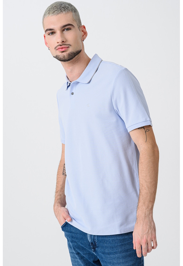 Тениска от памучно пике с яка – Пастелносин CALVIN KLEIN
