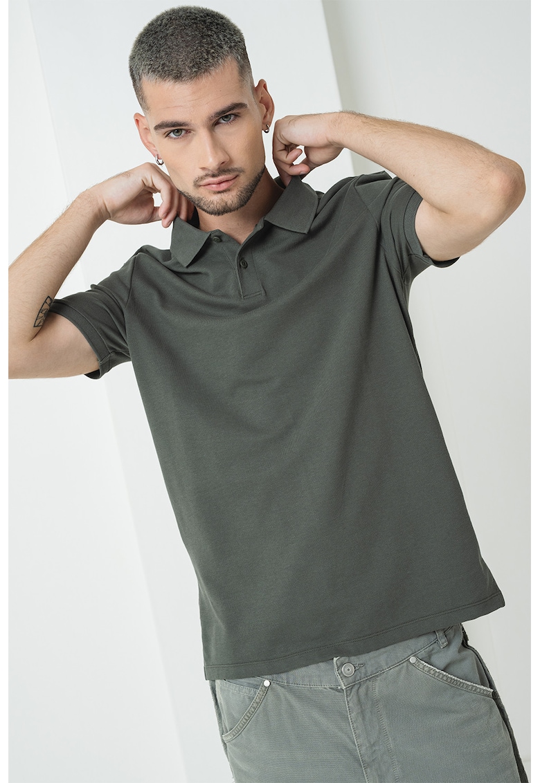 Характеристики Цвят: tъмносив Принт: без принт – лого Материал: памук Кройка: стандартна Модел: поло Дължина ръкав: къс ръкав Детайли: цепка с копчета – материя пике Състав Външна част: 100% памук Информация за модел Моделът е облечен с размер M. Размер на модела: 190 cm …