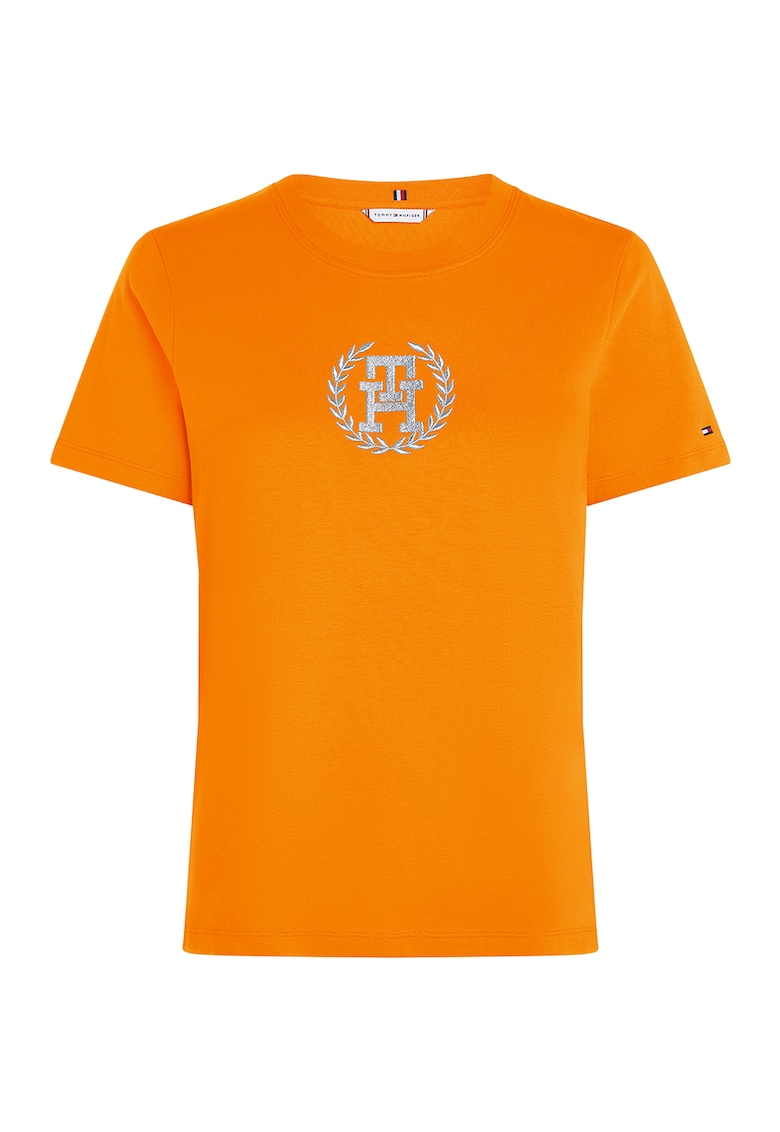 Характеристики Цвят: оранжев Принт: лого Материал: памук Кройка: стандартна Стил: ежедневен Модел: обло Дължина ръкав: къс ръкав Детайли: бродерия Състав Външна част: 100% памук