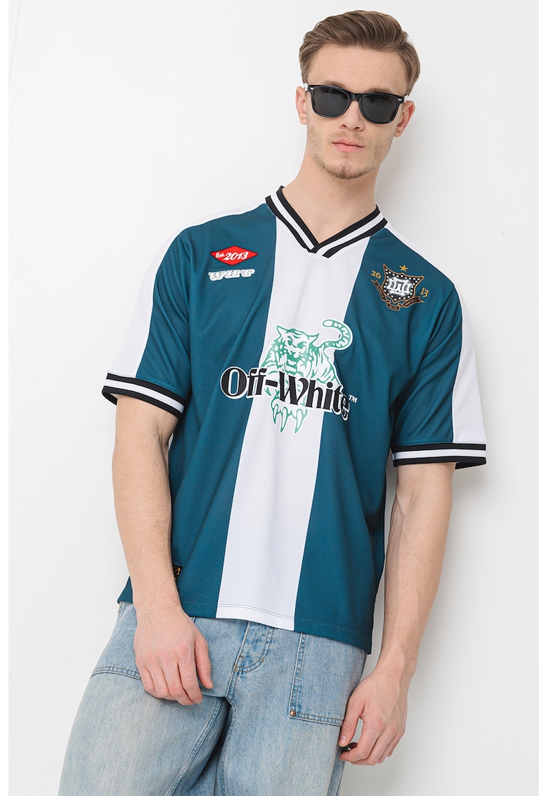 Тениска с дизайн с цветен блок – Бял/Зелен OFF-WHITE