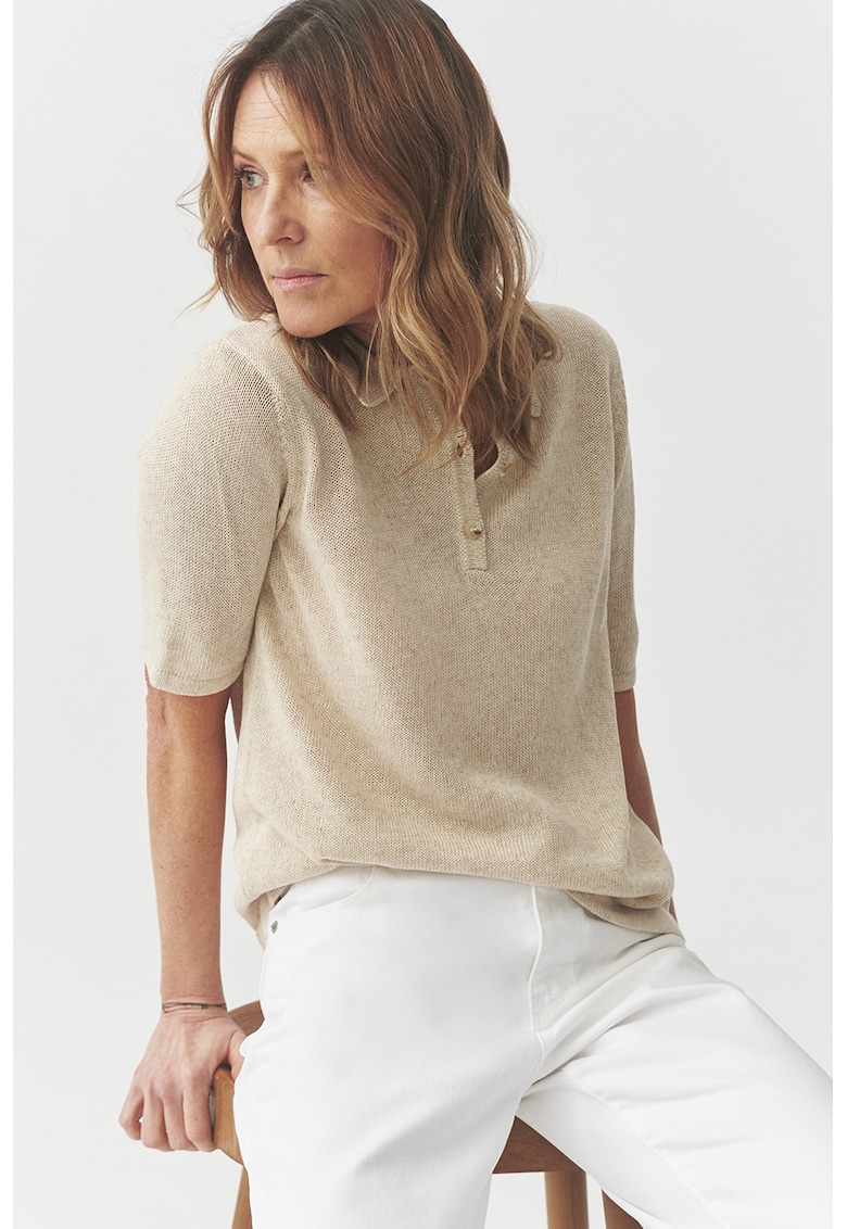 Тениска с лиосел и лен с яка и 3/4 ръкави – Бежов Tatuum