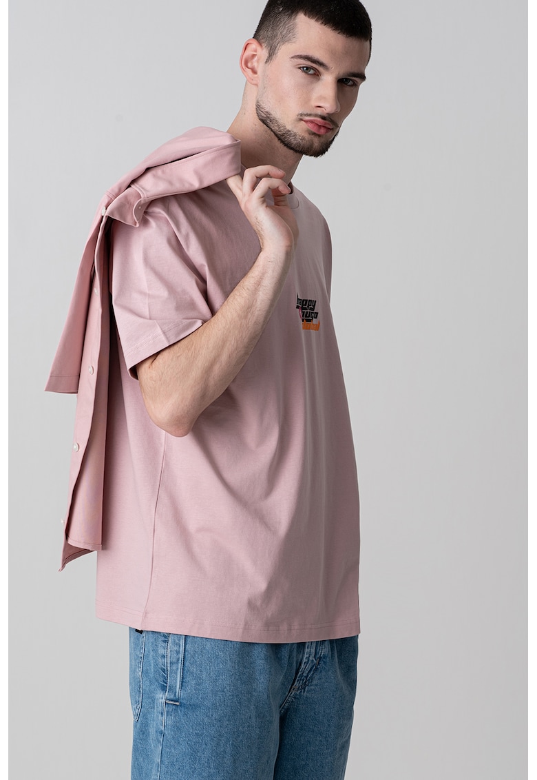 Характеристики Цвят: прашно розово Принт: лого Материал: памук Кройка: стандартна Модел: обло Дължина ръкав: средна Състав Външна част: 100% памук Информация за модел Моделът е облечен с размер M. Размер на модела: 190 cm височина – 93 cm Гръдна обиколка – 77 cm Талия – 106 cm Ханш