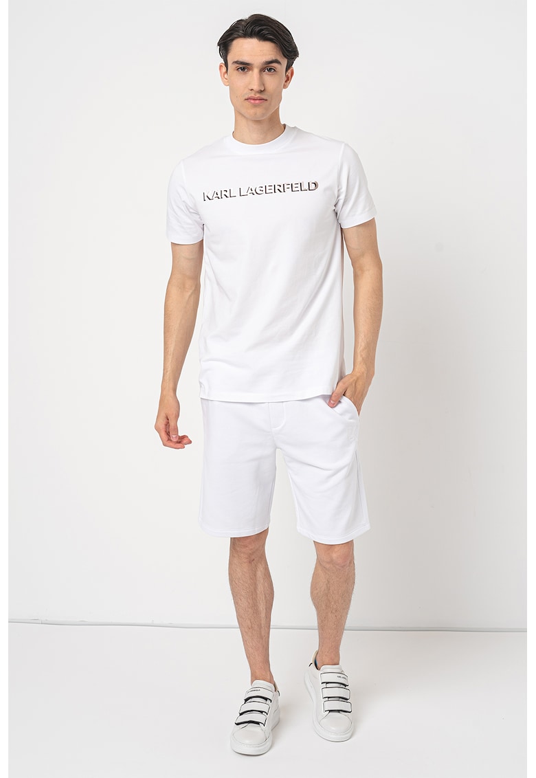 Тениска с овално деколте и лого – Бял/Сребрист Karl Lagerfeld