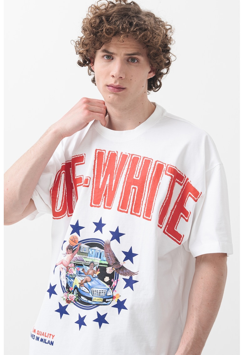 Тениска с овално деколте и лого – Червен/Тъмносин/Бял OFF-WHITE