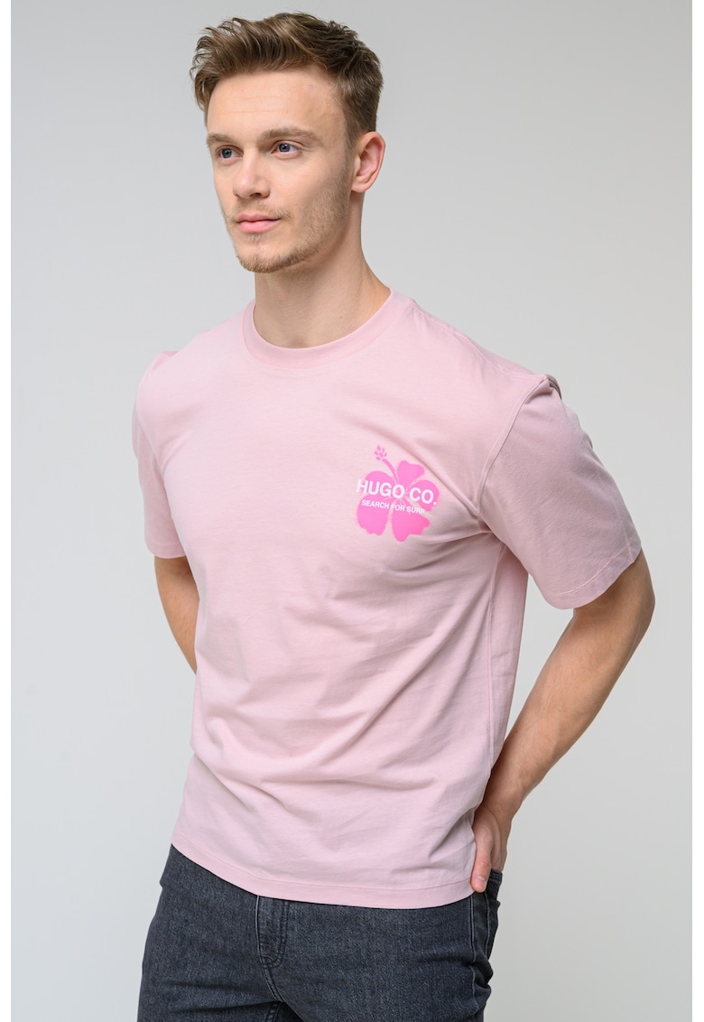 Характеристики Цвят: светлорозов Принт: лого – графичен Материал: памук Кройка: стандартна Модел: обло Дължина ръкав: къс ръкав Състав Външна част: 100% памук Информация за модел Моделът е облечен с размер M. Размер на модела: 191 cm височина – 99 cm Гръдна обиколка – 80 cm Талия …
