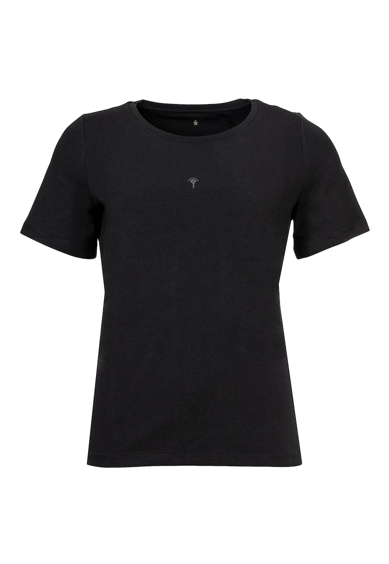 Характеристики Цвят: черен Принт: без принт Материал: памук – еластан Кройка: стандартна Модел: обло Дължина ръкав: къс ръкав Състав Външна част: памук – еластан