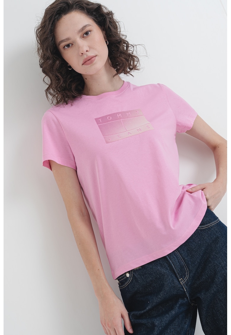 Характеристики Цвят: розово – прашно розово Принт: лого Материал: памук – вискоза Кройка: стандартна Модел: обло Дължина ръкав: къс ръкав Състав Външна част: 70% памук – 30% вискоза Информация за модел Моделът е облечен с размер S. Размер на модела: 177 cm височина – 85 cm Гръдна …