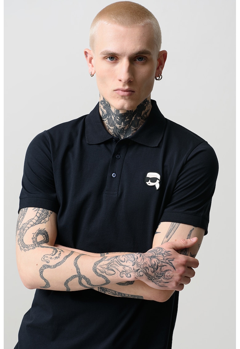 Тениска с яка и гумирано лого – Ултрамарин синьо Karl Lagerfeld