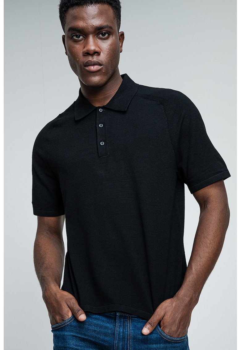 Характеристики Цвят: черен Принт: без принт Материал: синтетичен – вискоза Кройка: стандартна Яка: поло Дължина ръкав: къс ръкав Състав Външна част: 72% вискоза – 28% рециклиран полиестер Информация за модел Моделът е облечен с размер M. Размер на модела: 184 cm височина – 95 cm …