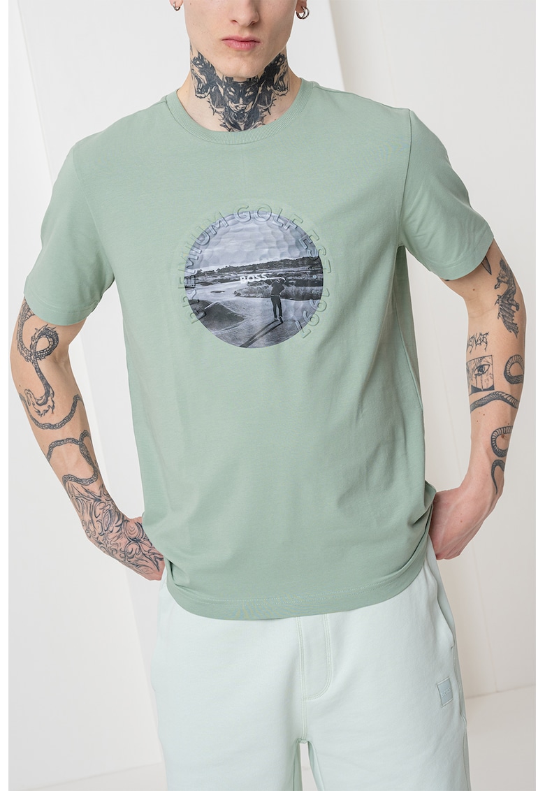 Относно Тениска Heritage с памук и фотопринт – Сив/Зелени аспержи BOSS