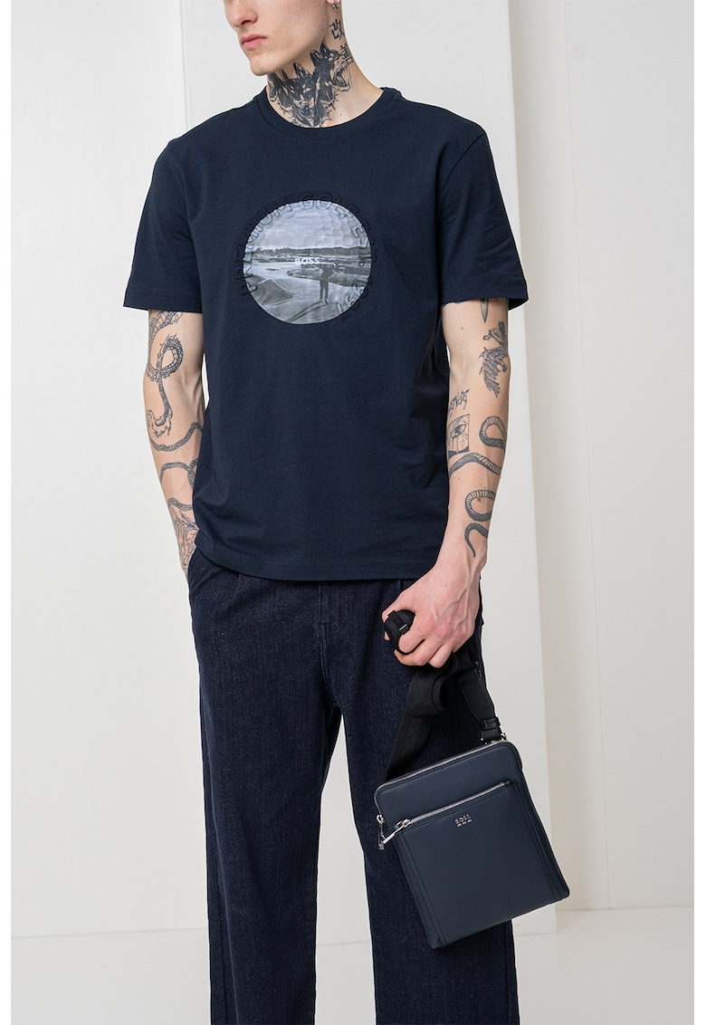 Тениска Heritage с памук и фотопринт – Ултрамарин синьо BOSS
