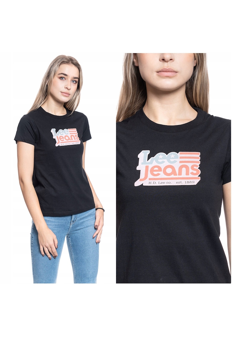 Тениска – Slim 100% памук – без закопчаване – къс ръкав – черна – 1 брой – Черен Lee