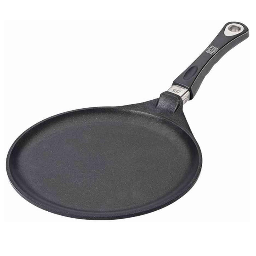 За Тиган за палачинки AMT Gastroguss 128, 28 см, Алуминиева отливка, Незалепващо покритие Lotan®, До 240°C, Черен