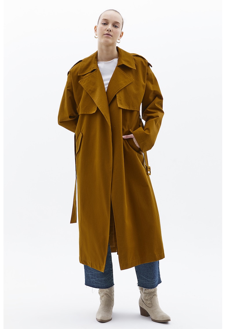 Тренч с раздвоен ревер и скосени джобове OXXO