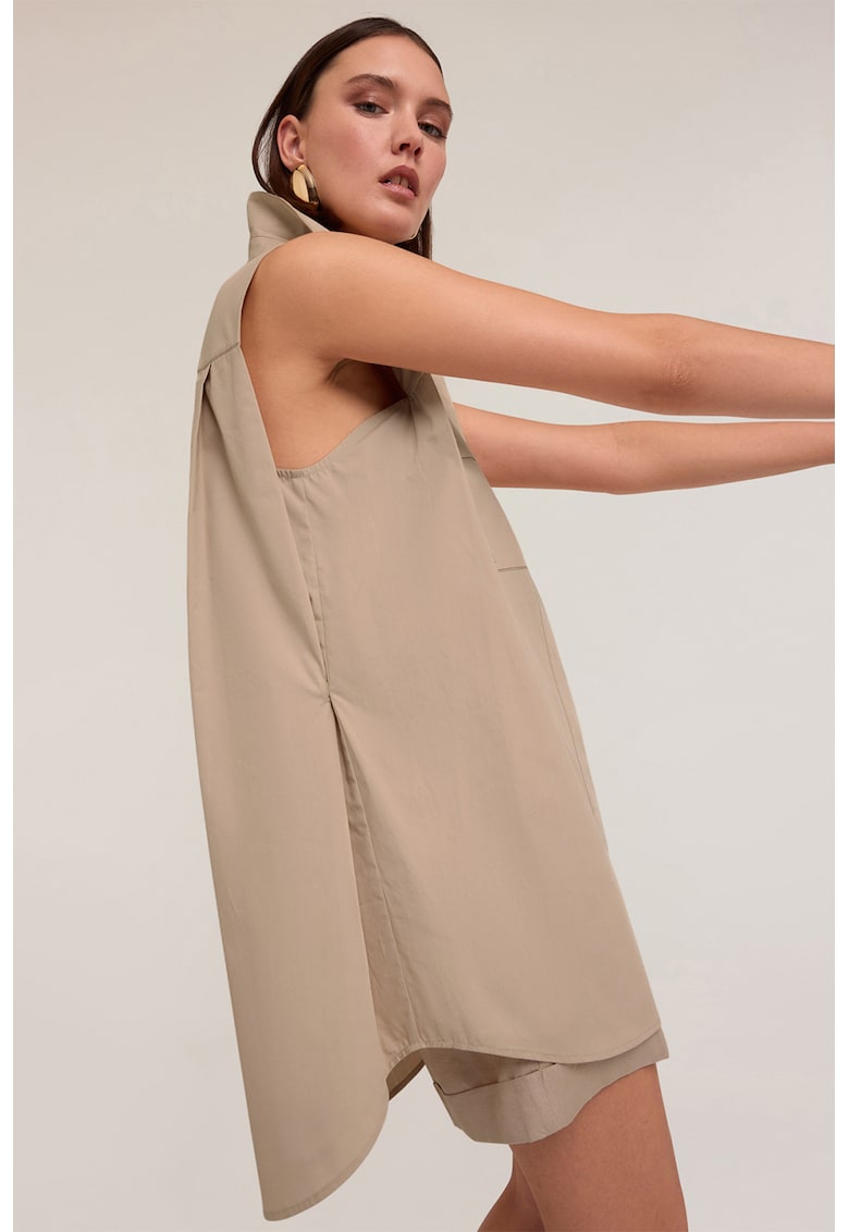 Уголемена памучна риза без ръкави – Бежов Motivi