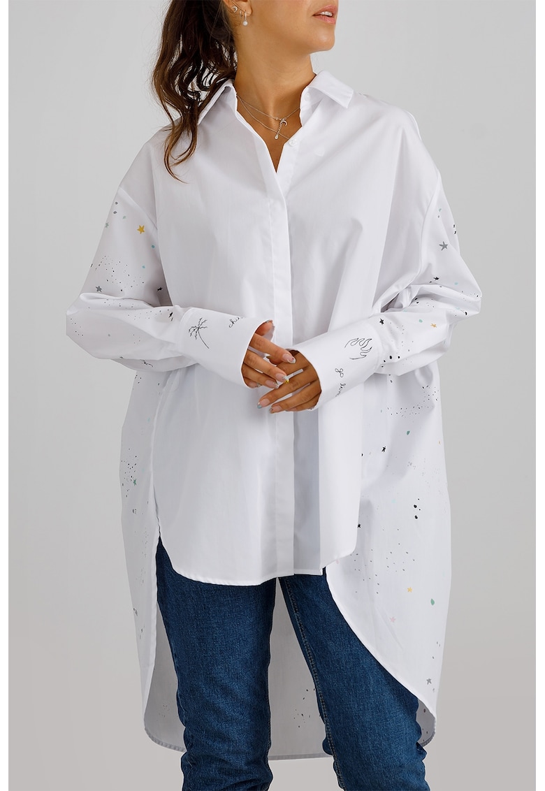 Уголемена риза с издължена задна част – Бял/Зелен/Черен Madlen