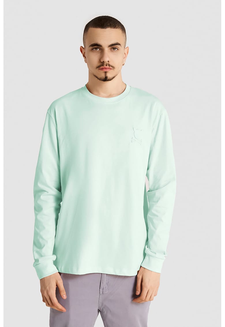 Характеристики Цвят: ментово зелено Принт: без принт Стил: ежедневен Кройка: стандартна Закопчаване: без закопчаване Материал: памук Ръкави: маншети Дължина ръкав: дълъг ръкав Детайли: лого на гърдите Състав Външна част: 100% памук