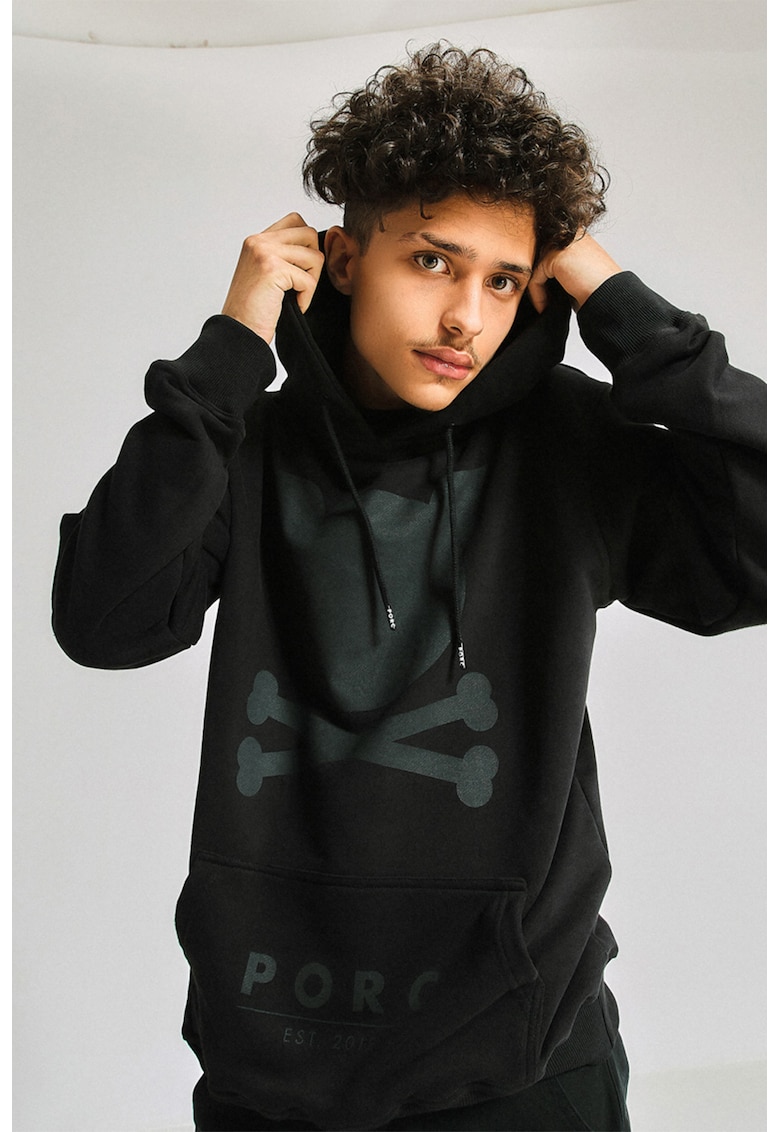 Унисекс худи с лого – Черен PORC