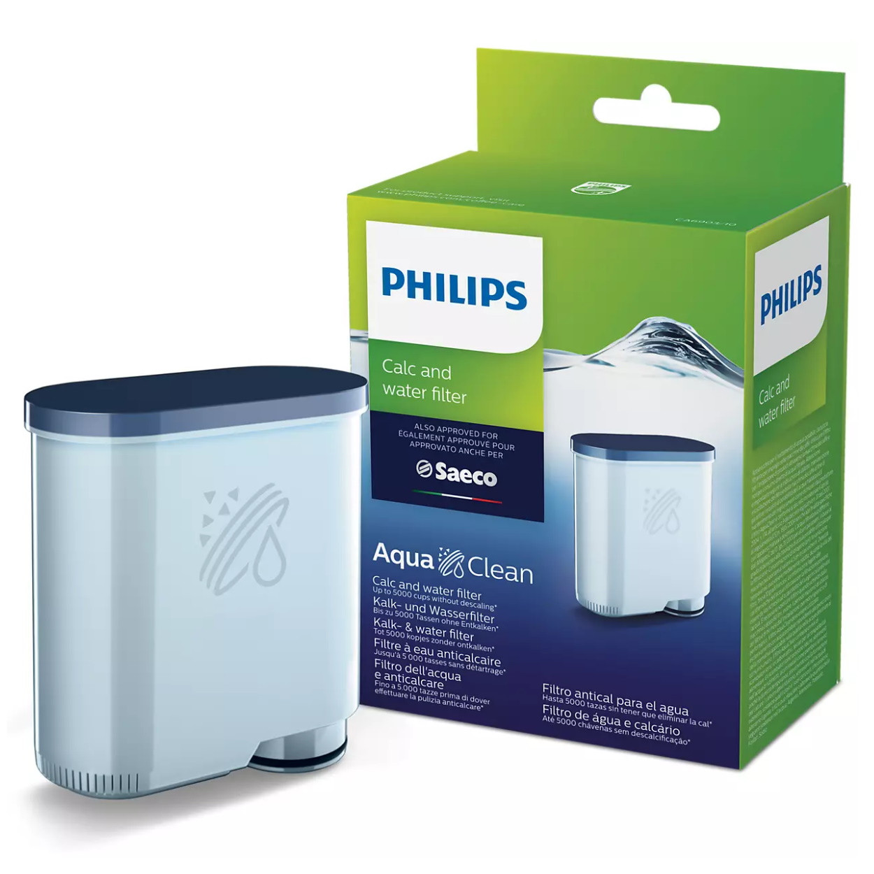 Филтър за вода Philips Saeco AquaClean CA6903/10, До 625 чаши, Удължава живота на машината, Премахва калция по естествен път, Бял/син цена
