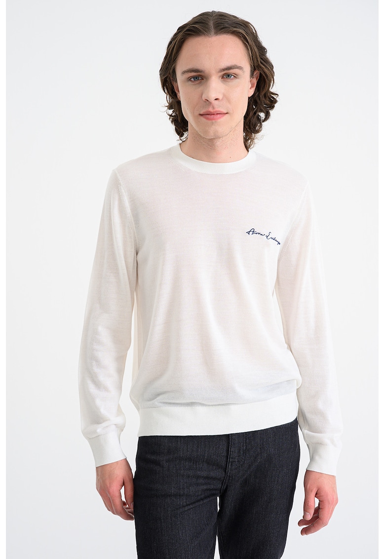 Относно Фино плетен пуловер с вълна – Бял ARMANI EXCHANGE