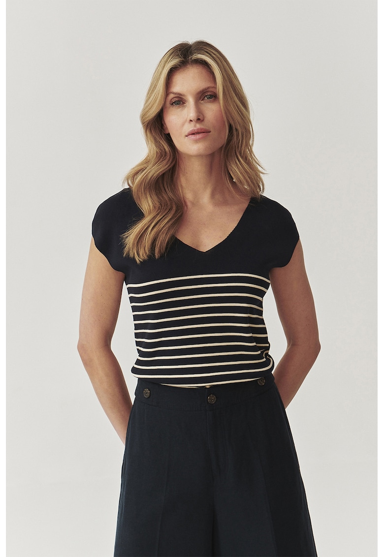 Фино плетен пуловер с шпиц – Бял/Черен Tatuum