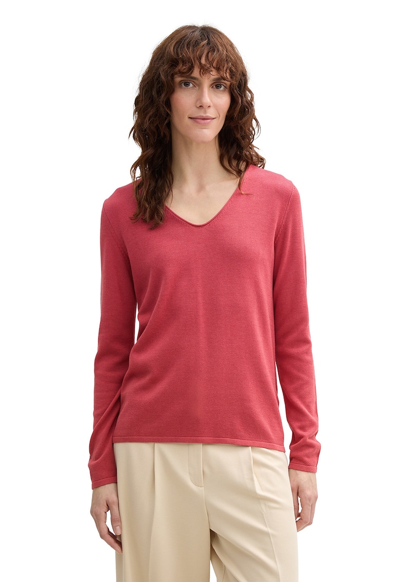 Фино плетен пуловер с шпиц деколте Tom Tailor