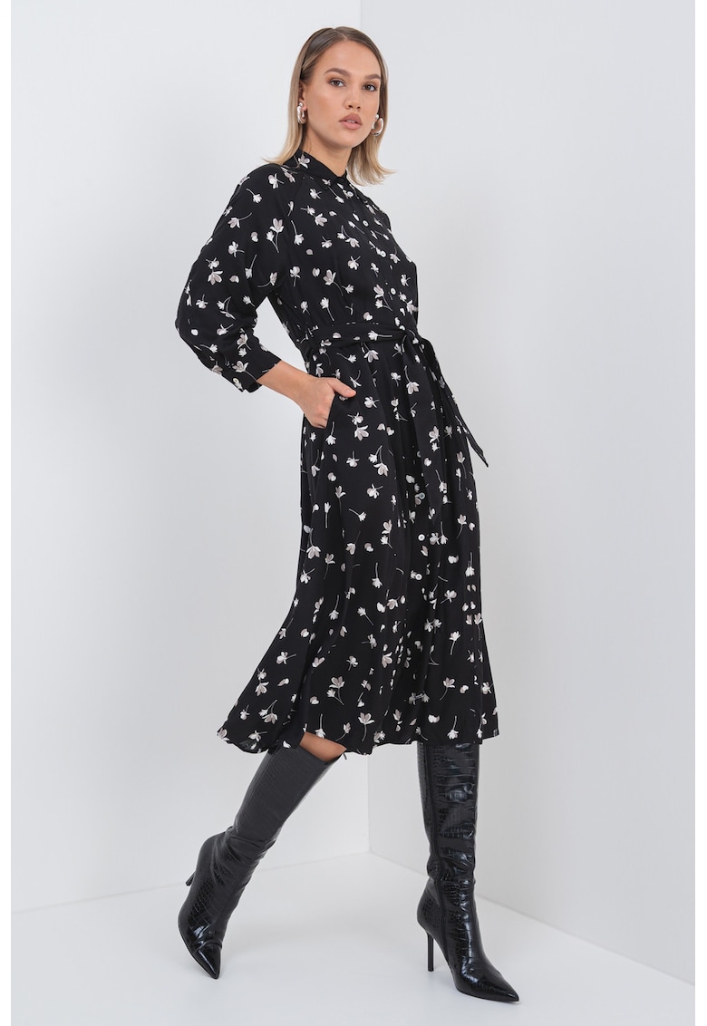 Флорална миди рокля с 3/4 ръкави – Черен/Сиво-бежов Marella