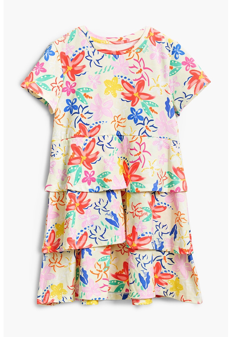 Характеристики Цвят: корал – пастелнорозов – светло бежово Стил: ежедневен Материал: памук Принт: флорален Кройка: разкроена Дължина ръкав: къс ръкав Стил деколте: кръгло Закопчаване: без закопчаване Колекция: пролет – лято Състав Външна част: 100% памук