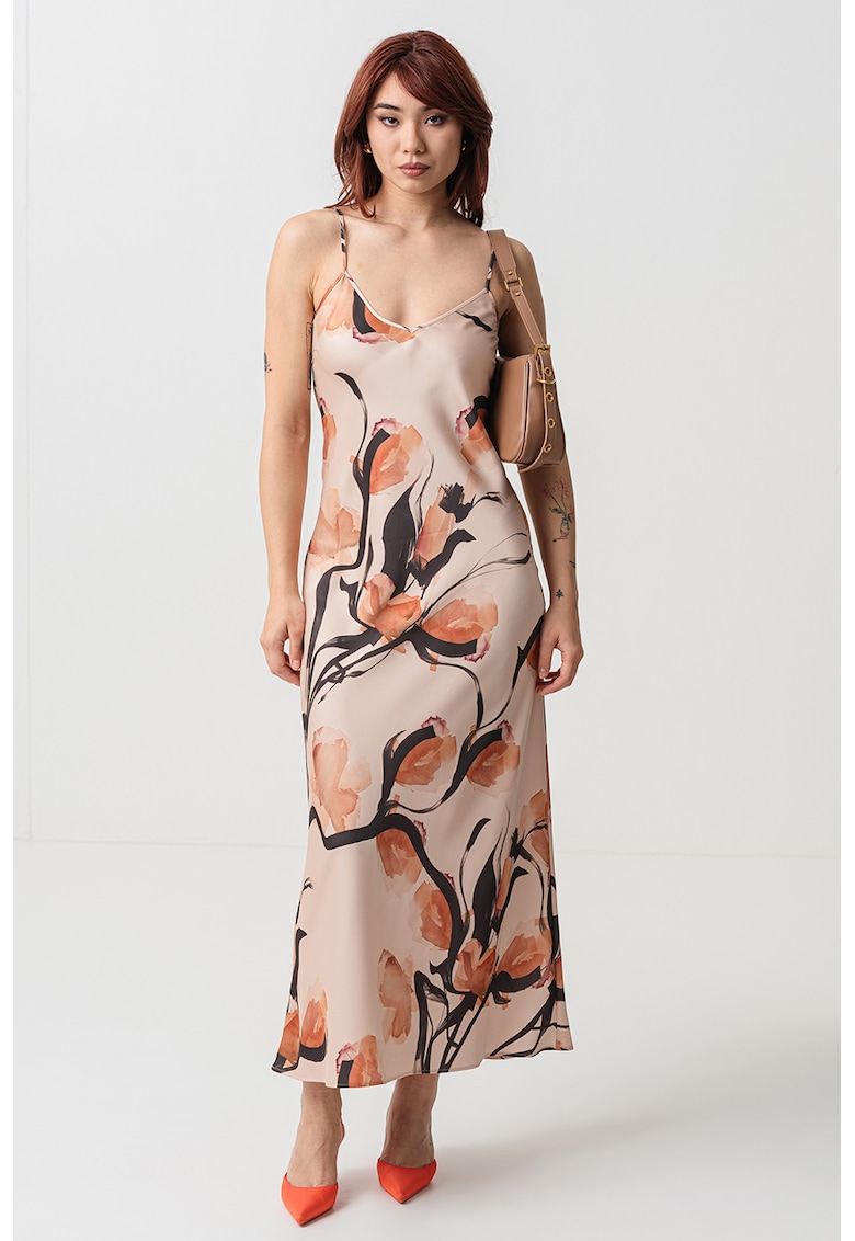 Характеристики Цвят: черен – персийски портокал Стил: ежедневен Материал: полиестер Принт: флорален Кройка: права Дължина: дълга Деколте: шпиц Дължина ръкав: без ръкав Състав Външна част: 100% полиестер Информация за модел Моделът е облечен с размер S/38 IT. Размер на …