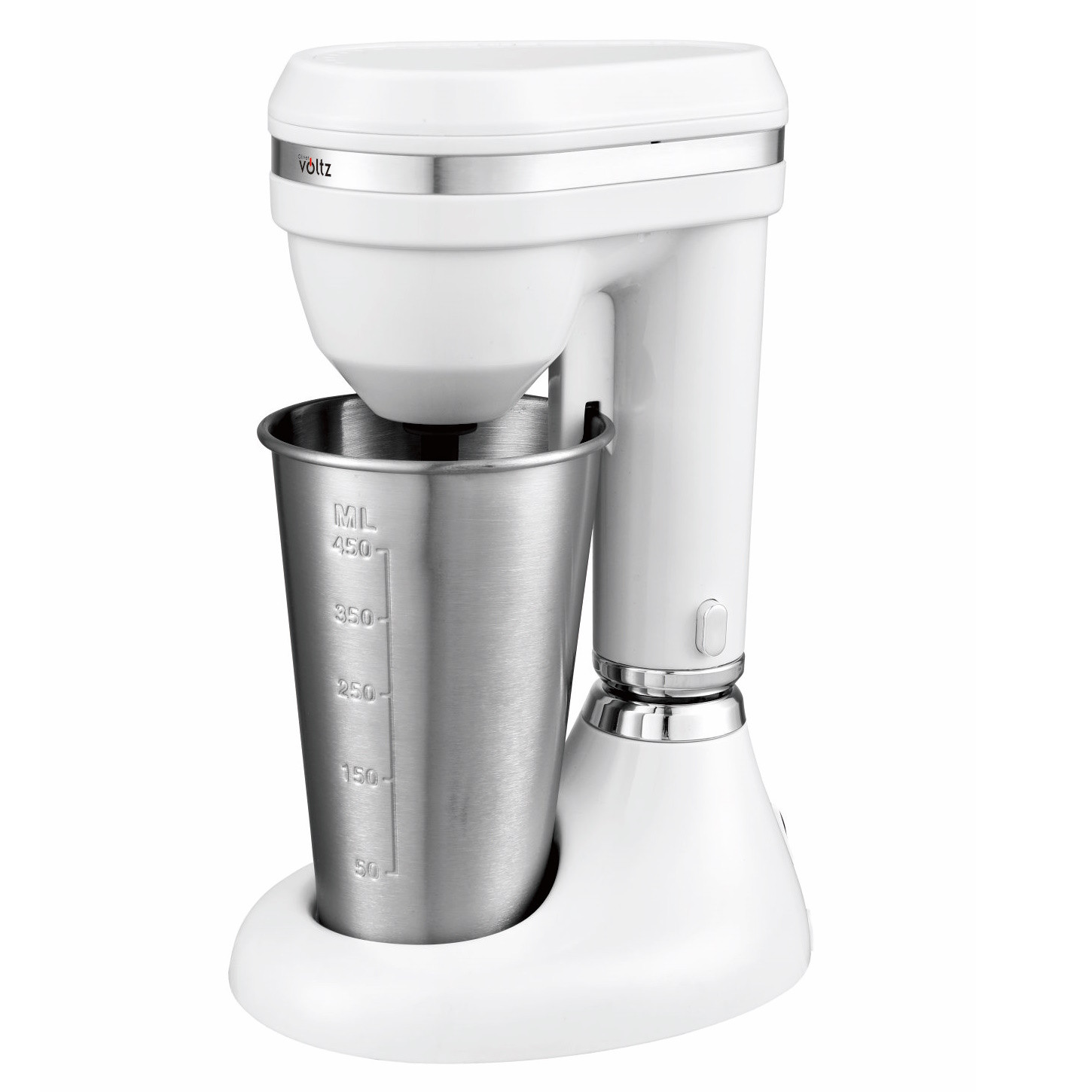 Фрапе миксер Oliver Voltz OV51163E, 100W, Чаша от неръждаема стомана с капацитет 450 мл, 2 скорости, Стоманена бъркалка, Бял