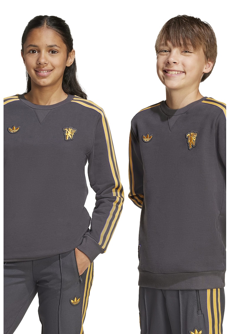 Относно Футболен суитшърт Manchester United с контрастно лого – Сламеножълт/Антрацитно сиво adidas Performance