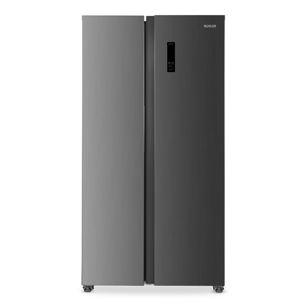 Хладилник Muhler NF450SBSIE, 439 л, Клас E, No Frost, Зонално регулиарне на температурата, LED дисплей, Сив на най-добра цена.