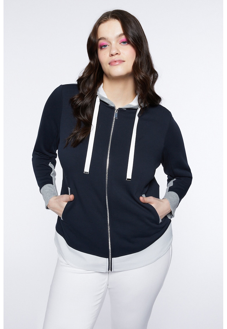 Худи с цип и десен в цветен блок – Сив меланж/Тъмносин Fiorella Rubino