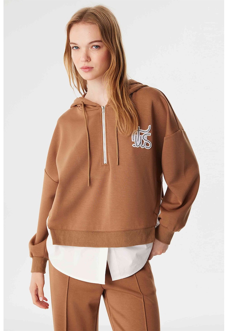 Худи 2 в 1 с къс цип – Коняк кафяв TWIST
