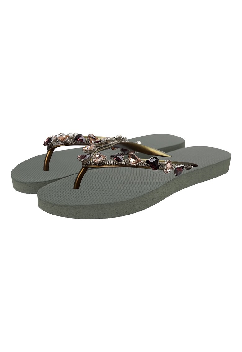 Оригинални Чехли Heart с декоративни камъни – Зелен UZURII