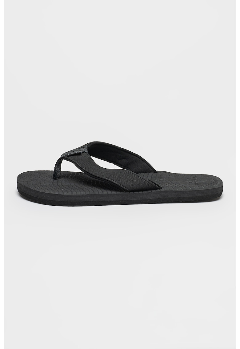 Характеристики Тип продукт: плажни чехли Цвят: избеляло черно – антрацитно сиво Принт: без принт Материал: текстил Състав Горна част: текстил Материал интериор: други материали – текстил Материал подметка: други материали
