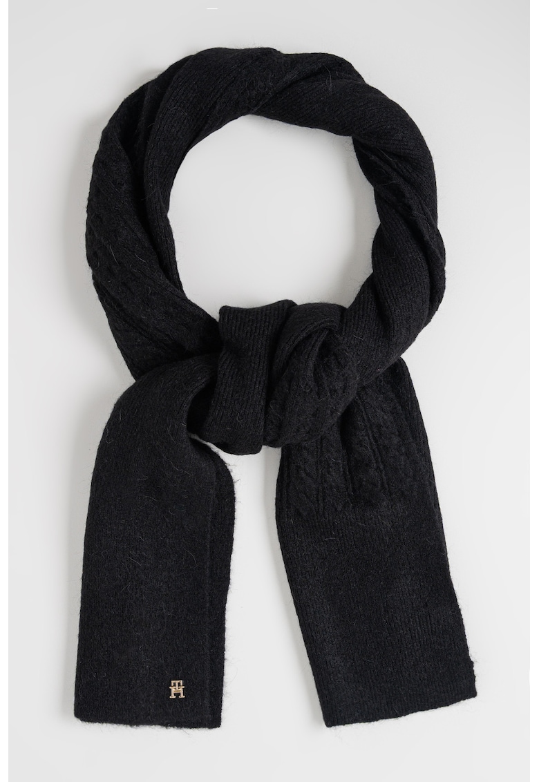 Шал с вълна с плетка осморка – Черен Tommy Hilfiger