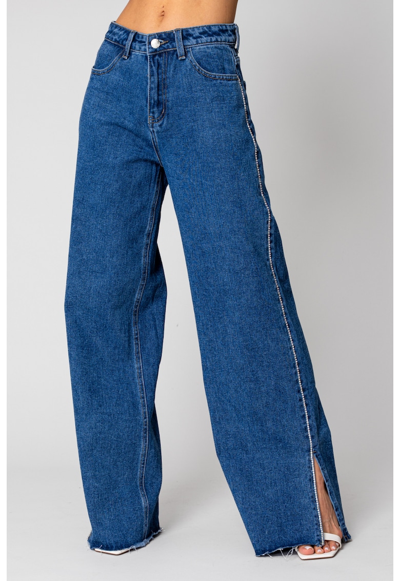 Широки дънки от деним с кристали в синьо 16342 – Син uFIT