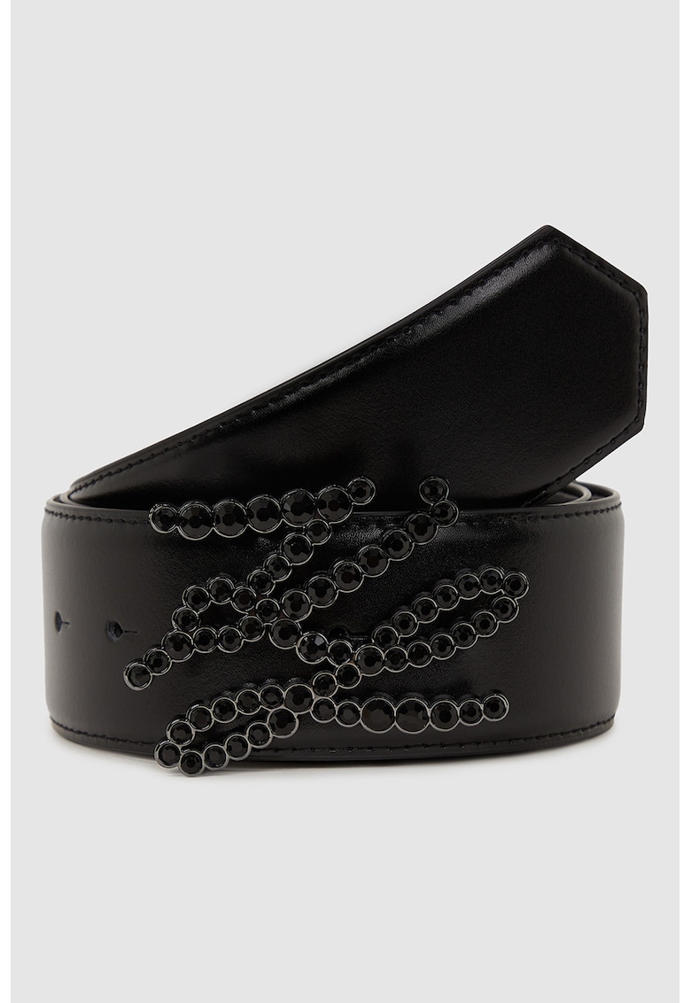 Широк колан с декоративни камъни – Черен Karl Lagerfeld