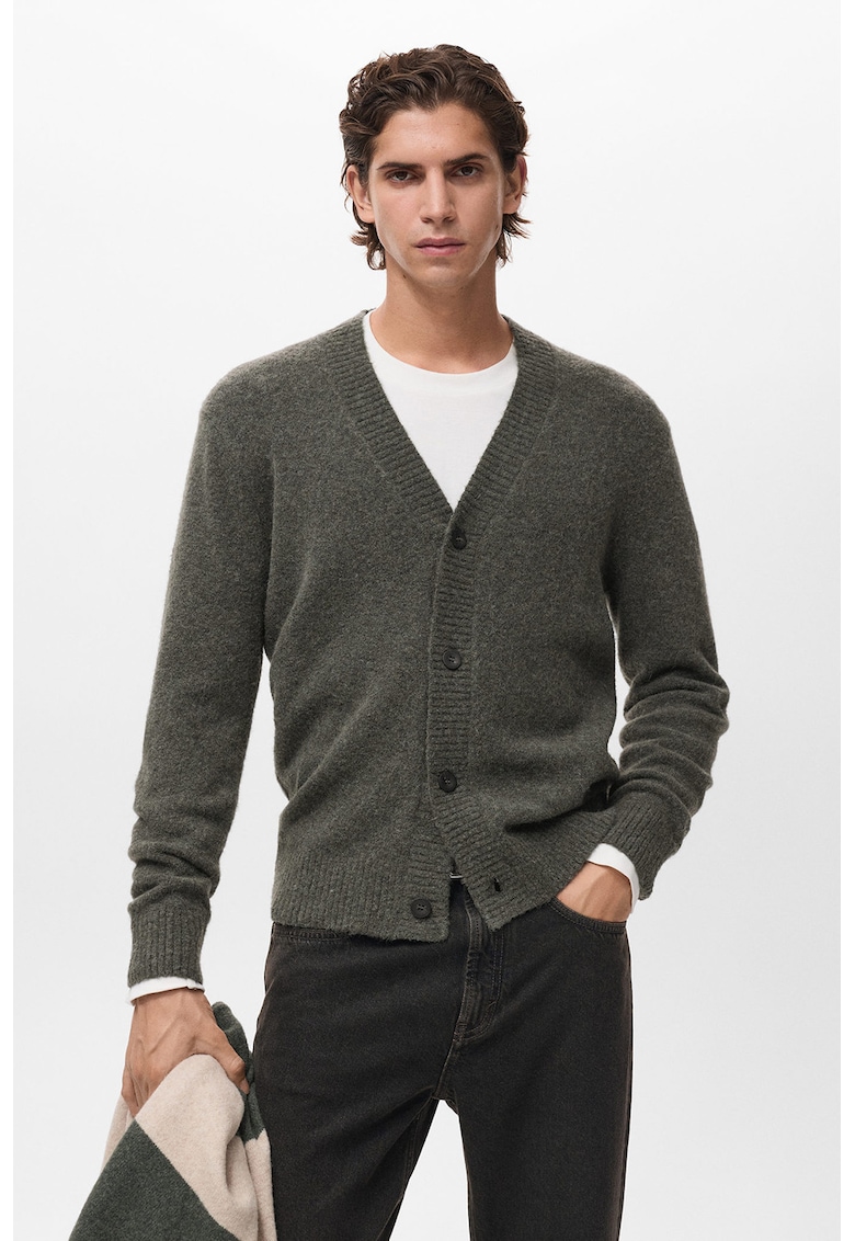 Характеристики Цвят: tъмносив Принт: без принт Материал: синтетичен – вълна Кройка: стандартна Закопчаване: копчета Модел: v-образно деколте Дължина ръкав: дълъг ръкав Състав Външна част: 35% вълна – 30% полиестер – 20% полиамид – 11% алпака – 4% еластан