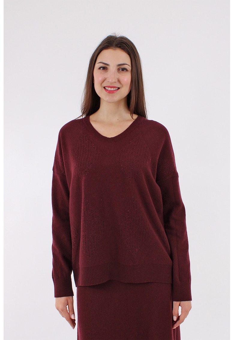 Шпиц пуловер с мерино и кашмир – Тъмночервен AMAYA ROS