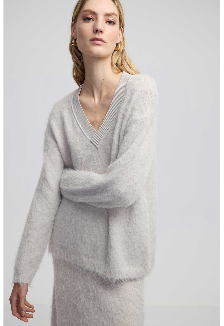 Относно Шпиц пуловер с паднали ръкави – Мръснобял Ipekyol