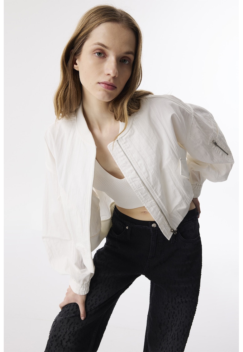 Яке бомбър с памук с цип – Мръснобял TWIST