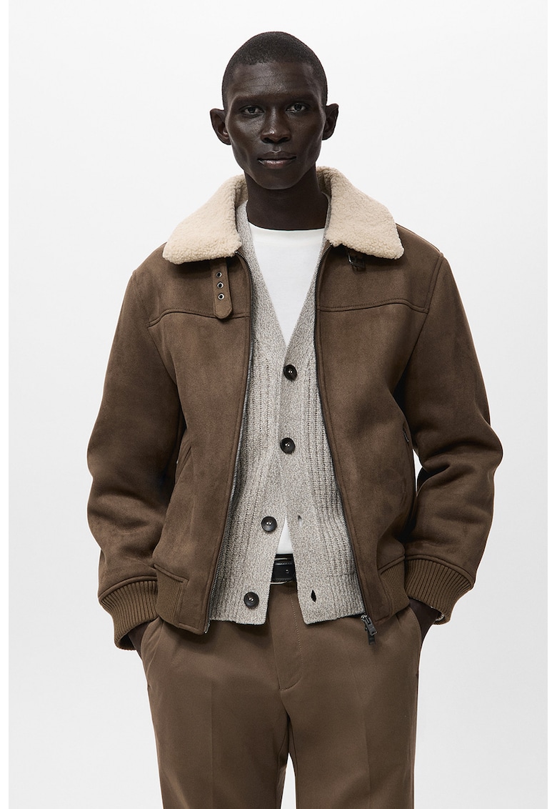 Яке от велур с еко вълна и джобове с цип – Карамел Mango