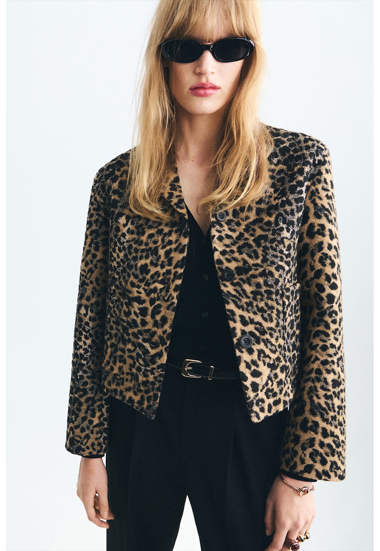 Яке с животински принт – Черен/Бледооранжев Mango