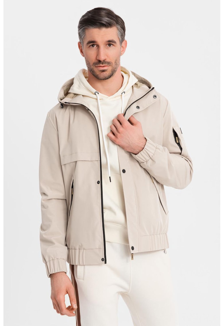 Яке с качулка OM-JANP-0225 – Функционално – Преходно – Тъмнобежово OMBRE