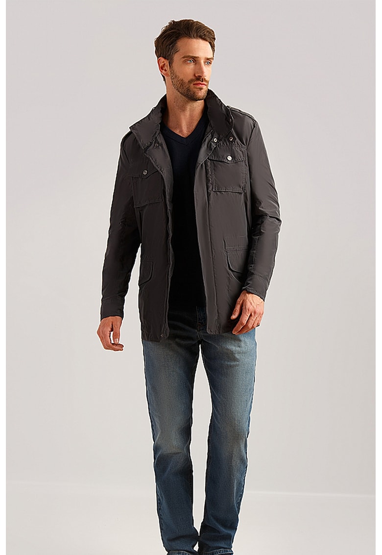 Характеристики Тип продукт: яке Цвят: tъмносив Материал: полиамид Кройка: стандартна Принт: без принт Качулка: с качулка Дължина ръкав: дълъг ръкав Джобове: с цип Закопчаване: цип Състав Външна част: 100% полиамид Подплата: 100% полиестер