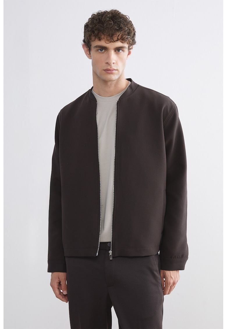 Характеристики Тип продукт: яке Цвят: тъмнокафяв Материал: полиестер – вискоза Кройка: стандартна Принт: без принт Качулка: без качулка Дължина ръкав: дълъг ръкав Закопчаване: цип Състав Външна част: 71% полиестер – 22% вискоза – 7% еластан