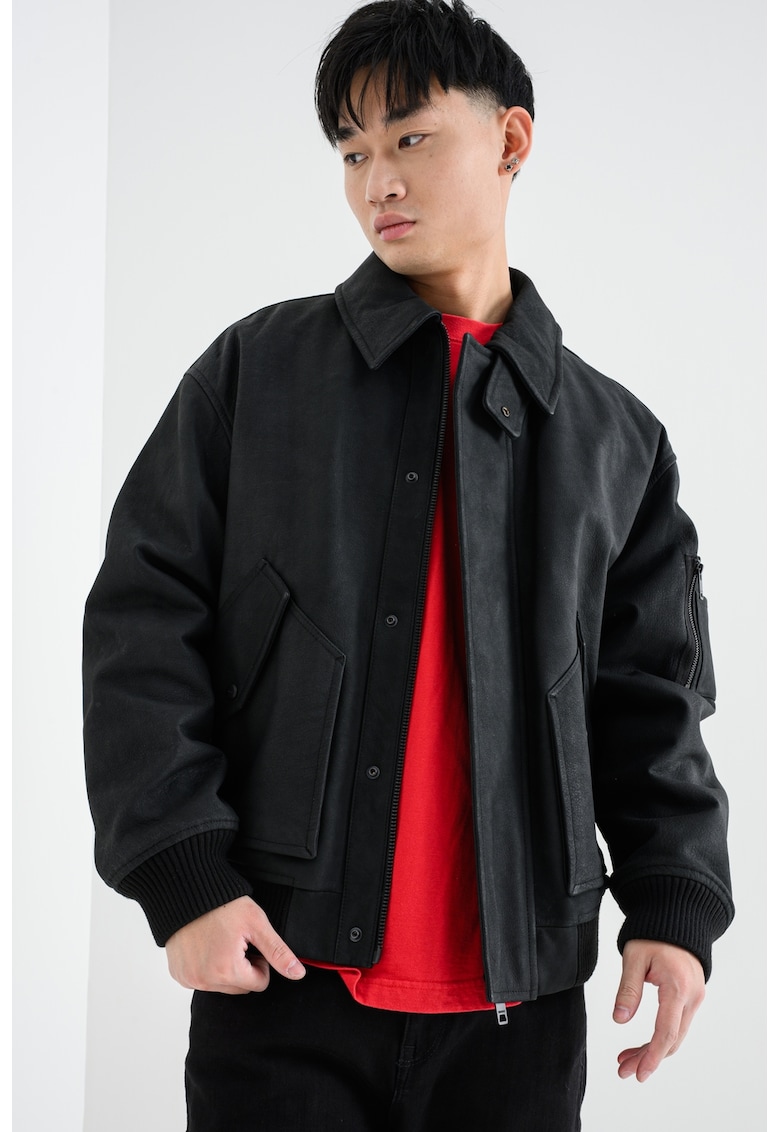 Яке Lardin от набук с джобове – Черен HUGO